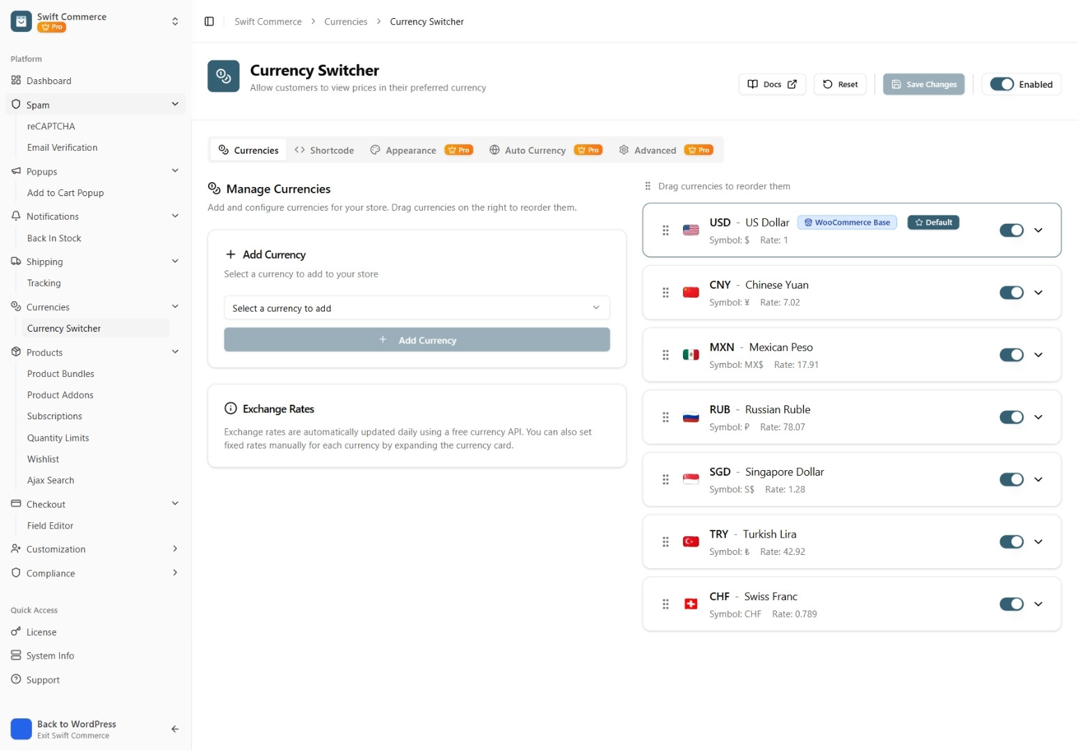 - I recommend Swift Commerce constantly. The all-in-one approach eliminates the number one problem I see: plugin conflicts. It's a no-brainer. Chris P WooCommerce Consultant 5.0