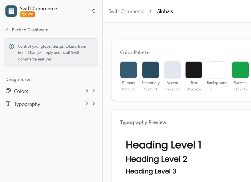 Version 1.3.0 is less about adding one big headline feature and more about raising the baseline of what Swift Commerce does across the board. Global Styles makes brand consistency effortless. The Email Customizer is no longer feature-specific. CAPTCHA protection gives you real choices. And every feature’s design controls now follow the same logical pattern.